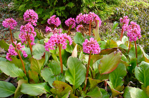 Mit der richtigen Pflege wächst Badan aktiv und erfreut sich an farbenfrohen Blüten.