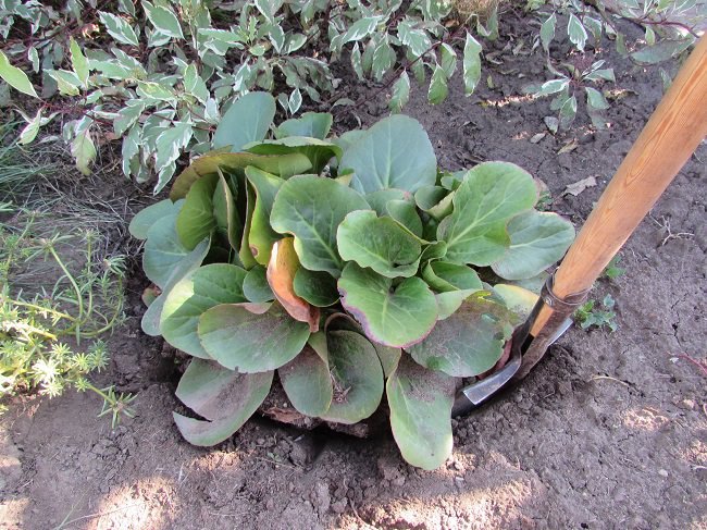 Im Frühjahr beginnt die Pflege beim Pflanzen von Badan auf offenem Boden mit dem Abbrechen verdorbener Blätter. Anschließend wird der Boden unter der Pflanze gemulcht und mit dem Universaldünger "Kemira Lux" gedüngt. Es ist notwendig, die Staude nach Bedarf zu gießen, ohne das Austrocknen des Bodens.