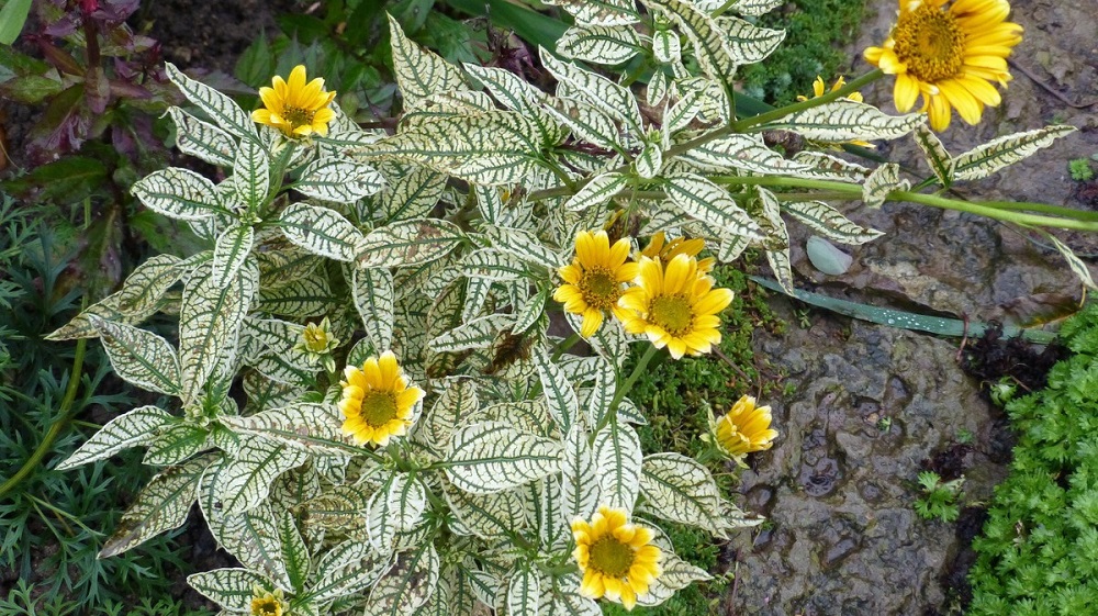 - Heliopsis Loraine Sonnenschein. Ein anderer Name für die Sorte ist Winter Sun. Dies ist ein kompakter, nicht mehr als 1 m langer mehrjähriger Busch. Silberig mit dunkelgrünen Laubadern und gelben, kamilleähnlichen Heliopsis-Blütenständen werden effektiv kombiniert. Die Sorte liebt regelmäßiges Gießen. Es wird empfohlen, den Wurzelbereich zu mulchen. Je kontrastreicher die Laubtöne der bunten Sorte sind, desto kompakter ist die Pflanze selbst.