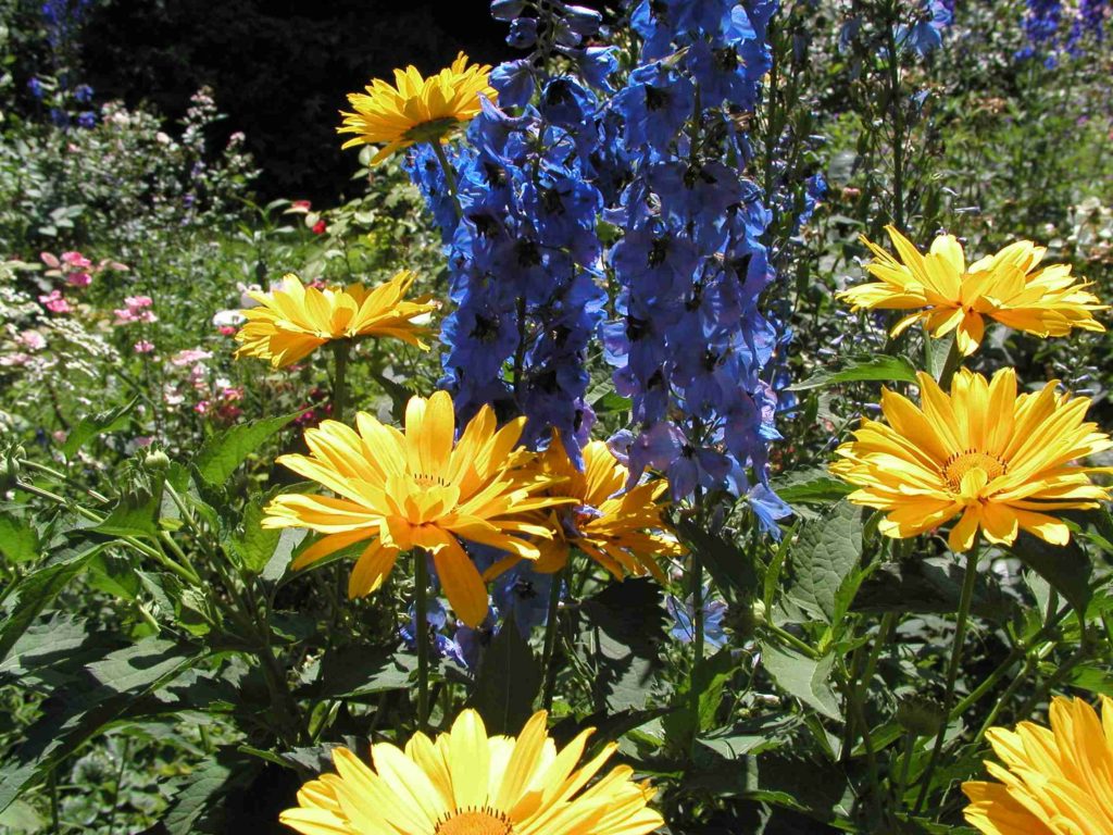 Die Landschaftsgestaltung eines jeden Standorts sollte mit den hellen, sonnigen Farben der Heliopsis abwechslungsreich sein. Bei Gruppenpflanzungen, in einem Duett mit Lavendel und lila Blüten, setzt seine Blüte einen besonders attraktiven Akzent.