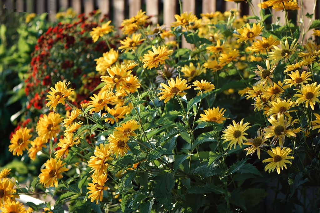 Die unprätentiöse, sonnig-helle Blütenheliopsis findet sich zunehmend in heimischen Gärten und Datschen. Aufgrund des minimalen Pflegebedarfs und der Witterungsbeständigkeit hat die Pflanze eine solide Position im Ranking der Gärtner erlangt. Die Anwendung ist universell: Die Blume ist im Garten, im Mixborder oder auf einer Alpenrutsche gleichermaßen wirksam. Kompakte Sorten eignen sich zum Anpflanzen in Behältern.