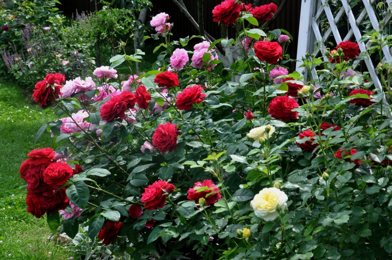- Blumenbeete im französischen Stil zu dekorieren (wenn nur Braithwaite-Rosen auf das Blumenbeet gepflanzt werden);