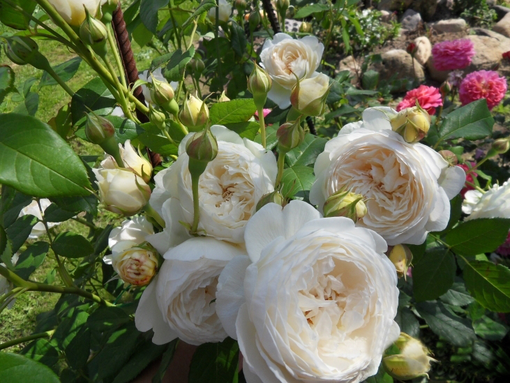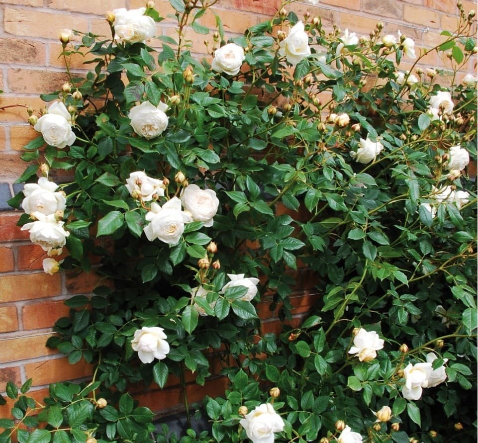 In der Sammlung von David Austin ist die schneeweiße Claire die wichtigste Perle: Weiße Blüten, die in reichen Blütenständen gesammelt werden, befinden sich auf aufrechten Trieben