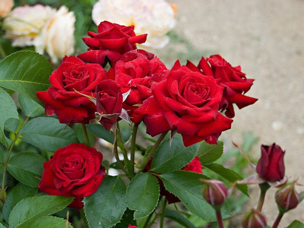 Diese Sorte gehört zur Floribunda-Gruppe, was "reichlich blühen" bedeutet. Es macht einen starken Eindruck mit roten Samtblättern und vielen blühenden Knospen. Diese Pflanze ist nicht nur wegen ihrer Blüten beliebt, sondern auch wegen ihrer dunkelgrünen, schönen Blätter, die gut zu ihnen passen.