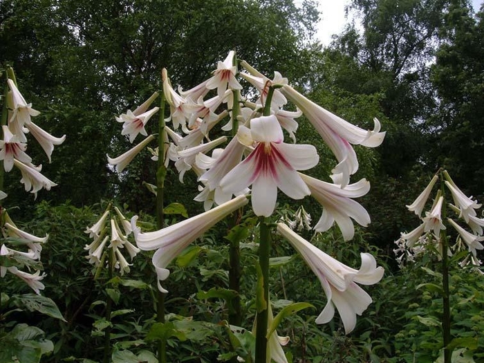 Die Blüten sind weiße Glocken von sehr länglicher Form (sie können bis zu 20 cm lang sein). Bei günstigen Bedingungen kann die Anzahl der Lilien am Stiel 80 Stück betragen.