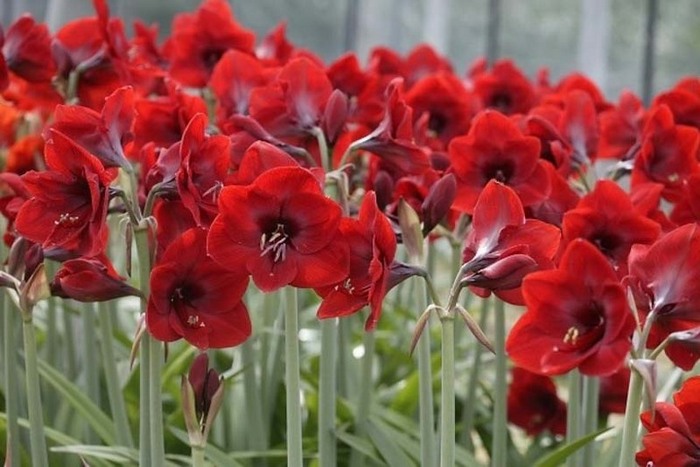 Lilienähnliche Blüten werden auch bei Amaryllis beobachtet. Diese mehrjährige Art wird für den Anbau als Zimmerpflanze verwendet. Obwohl unter geeigneten natürlichen Bedingungen, wächst es auf offenen Flächen.