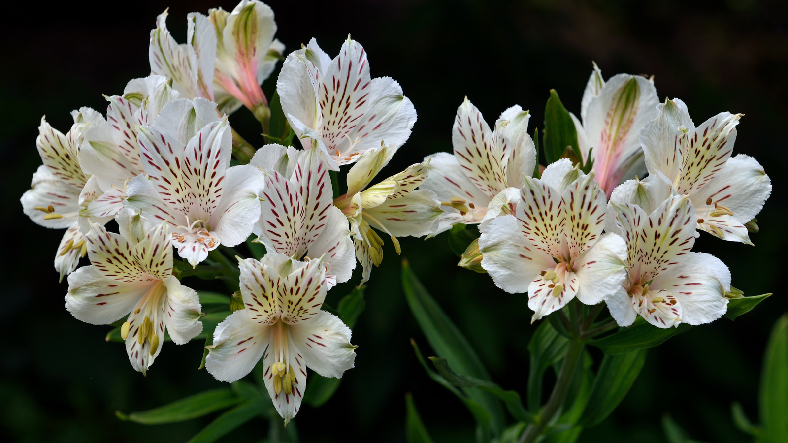 Auch unter den weißen Arten der Alstroemeria sind Sorten wie Virginia zu erkennen - auf den beiden oberen Blütenblättern befinden sich braune Markierungen.