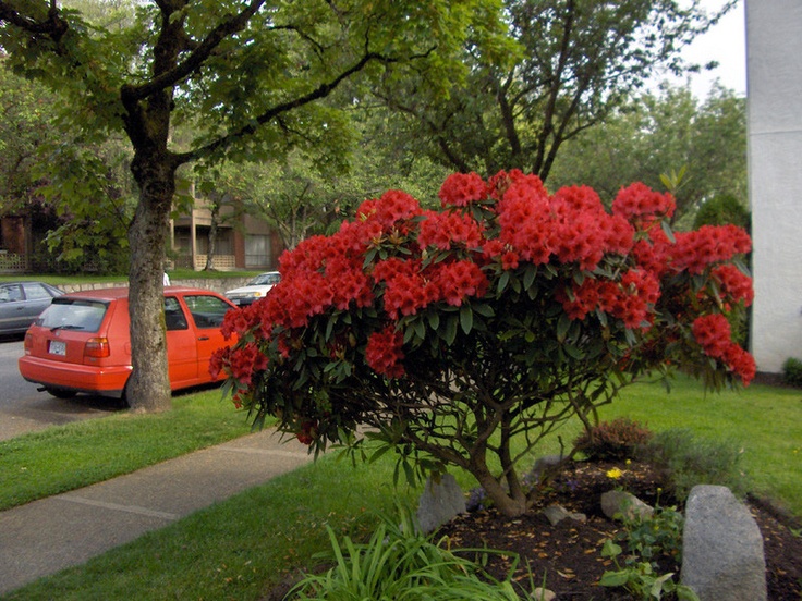 The site for planting a rhododendron should be calm and shaded. The area behind the northern wall of the house is perfect, where not as much light penetrates as required by other flowering crops.