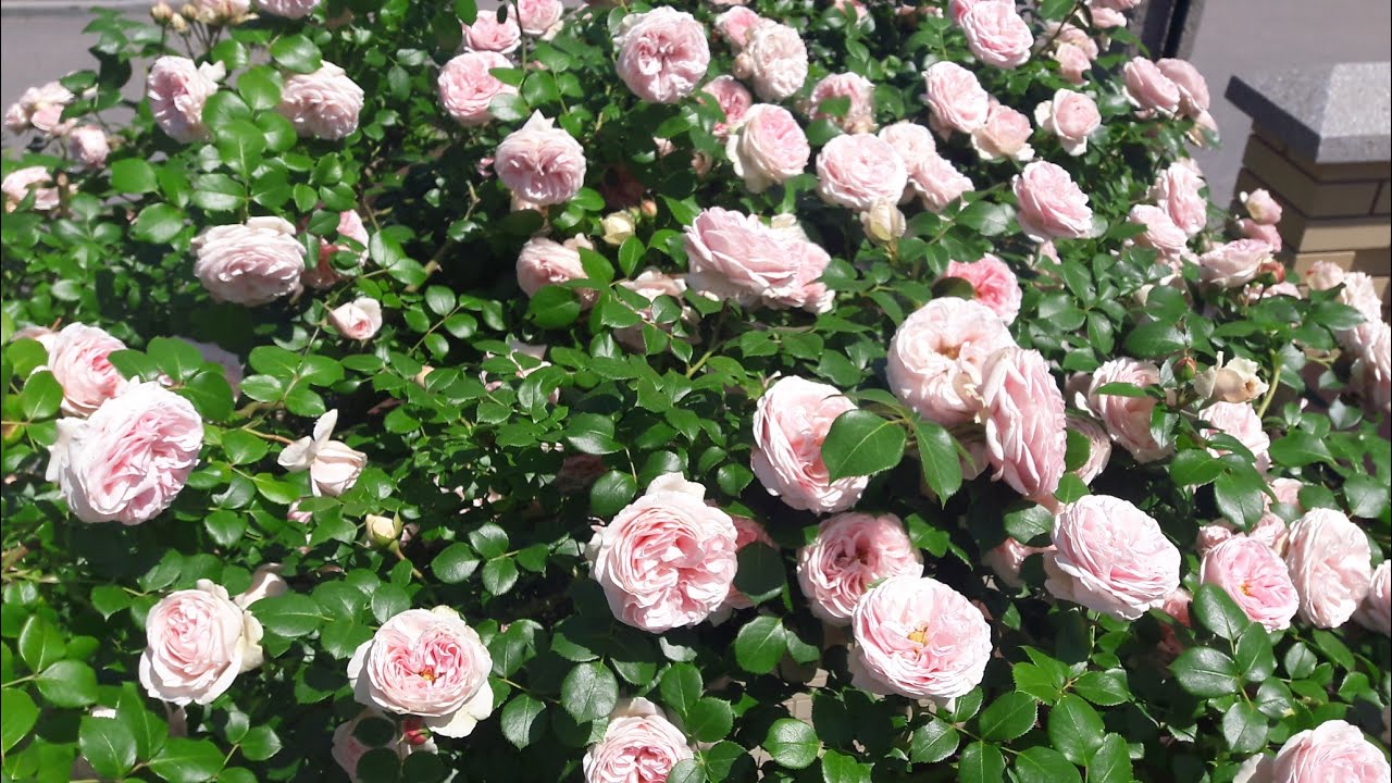 The flower bushes can reach a height of about 4 meters. In width, the Jardina bush is capable of developing up to one and a half meters. According to the description of the variety, the flower is large, with a diameter of 10-12 cm. The shades of the buds combine pale pink tones. One flower carries up to fifty petals.