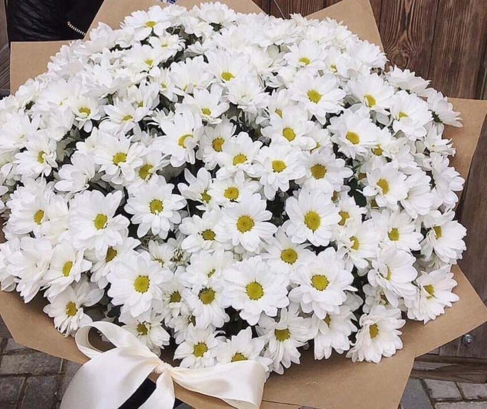 El crisantemo Bacardi de color blanco es más parecido a la manzanilla que a otras especies. Sus inflorescencias se distinguen por muchos pétalos blancos como la nieve y un centro amarillo.
