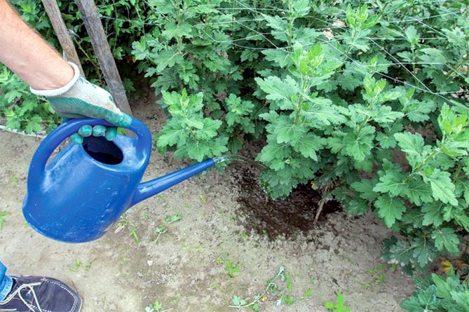 Los crisantemos tienen un sistema radicular superficial, lo que significa que se les muestra abundante riego. Sin suficiente humedad, los arbustos no serán tan exuberantes y hermosos como deberían ser. Algún tiempo después del riego, la tierra alrededor del arbusto debe aflojarse y rociarse con mantillo para retener la humedad por más tiempo.