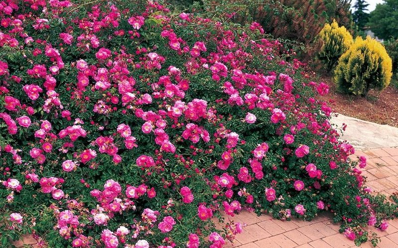 Para decorar un camino ancho, puedes plantar hermosas rosas a lo largo de él. Las rosas de pescador crecen rectas y, por lo tanto, se verán muy elegantes.