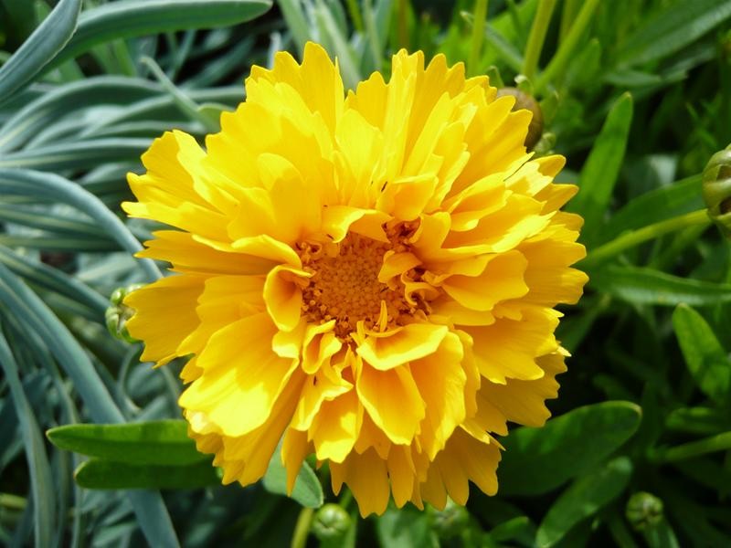 Un altro ibrido derivato da Coreopsis grandiflora. Le infiorescenze di spugna formano palline di straordinaria bellezza, dal colore dorato all'arancio.