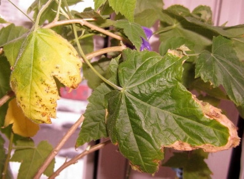 Abutilone blader blir gule og faller av på grunn av upassende miljøforhold. Om sommeren bør den optimale temperaturen være mellom 16 ° C og 25 ° C. I tillegg reagerer planten på overflod av sollys.