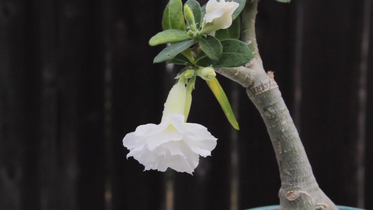 Denne varianten er valgt av de som utelukkende elsker hvite blomster. Adeniumhvit fikk navnet sitt fra den snøhvite blomstringen, slående i skjønnheten.