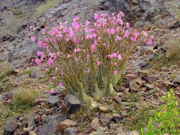 Adeniumblomsten ble først oppdaget i Afrika, hvoretter den ble dyrket aktivt på alle kontinenter. For å tilskrive den riktig til buskplanter, i sin naturlige habitat, er den i stand til å vokse opp til flere meter.