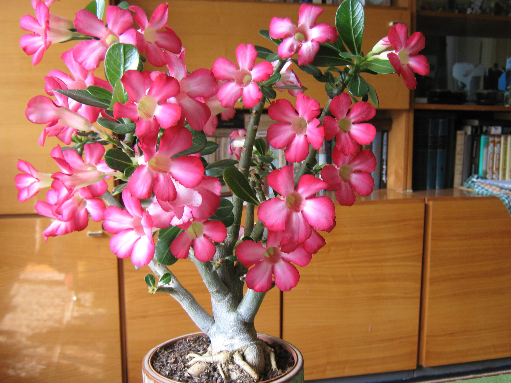 Adenium beskjæres og krones hver vår når den eksotiske rosen har våknet etter vinteren og kommet inn i vekstfasen. Skudd blir kuttet, og danner en vakker krone, etter vertinnens skjønn.