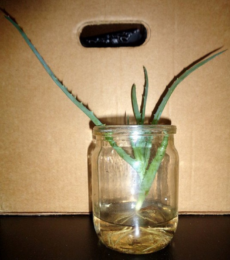 For å forplante aloe vera, må du ta flere skudd av planten (den øvre stammen med flere blader) og sette dem i en krukke med vann. Etter 3-4 uker vil røttene vises på dem. Deretter kan du plante aloe i en gryte, ved å følge alle transplantasjonsreglene og fortsette å ta vare på kjæledyret.