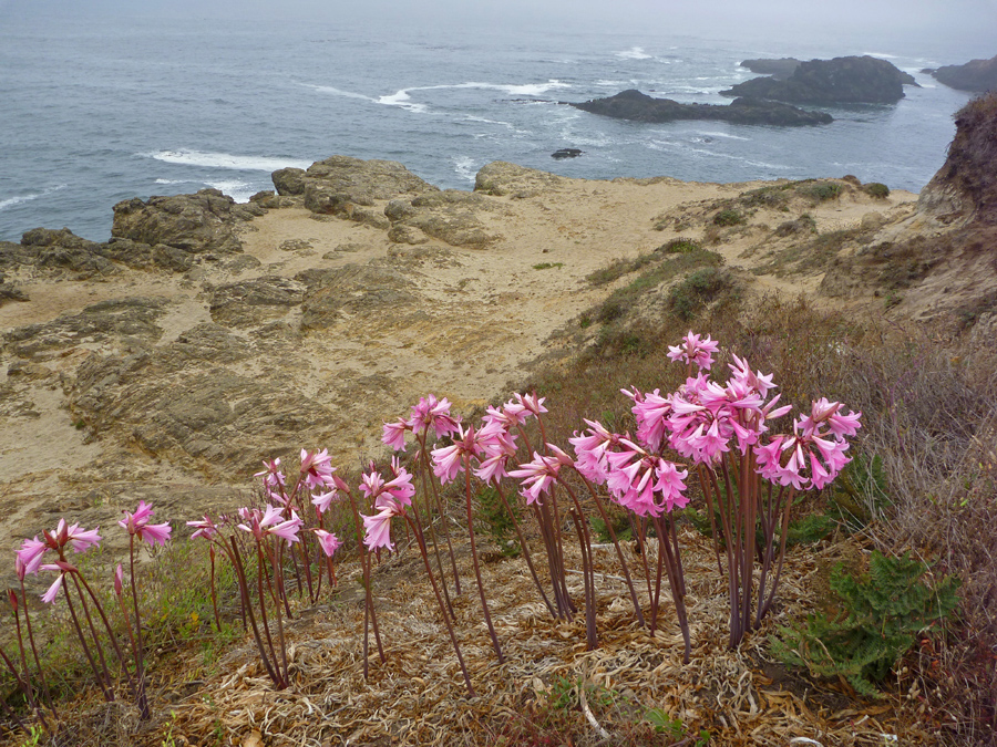 Peduncle uten hulrom, grønn med en uttalt lilla nyanse. Nå 1 m i høyden, ikke mer enn 12 blomster blomstrer ved kronen. Blomstringen er umbellate, bladene ligger ved røttene i to rader. Blomster når 8 cm i diameter, består av 6 kronblader, som har spisse spisser.