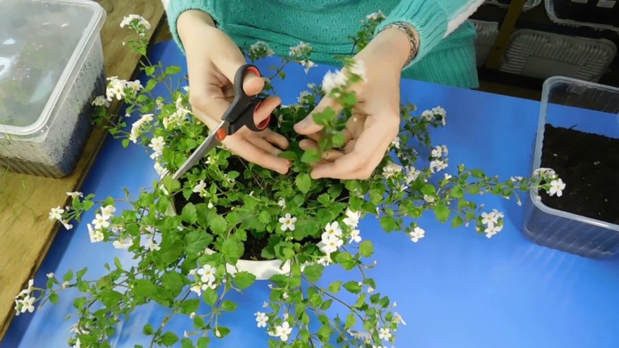 Hvis Bacopa ampelous er plantet, bør dyrking ledsages av beskjæring. Det er nødvendig å kutte minst 1/3 av lengden på opptaket. Avskårne skudd vil være et utmerket materiale for videre reproduksjon. Når du danner innredningen, kan du la flere skudd være lange, og kutte av andre, og skape interessante komposisjoner.