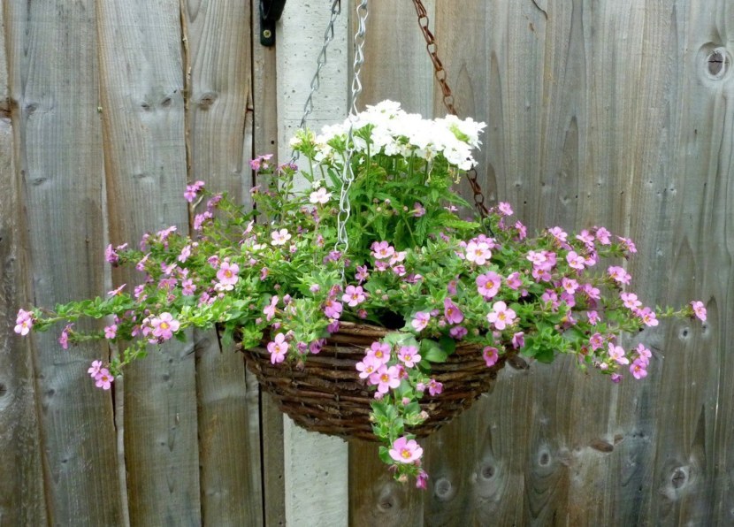 Bacopa eksisterer perfekt i samme gryte med andre rikholdige blomster, og skaper komposisjoner av utrolig skjønnhet