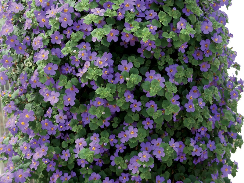 - bacopa. Små blader og blomster danner en fantastisk foss i en hvit, lilla eller rosa palett;