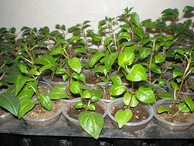 Frøplanter mottatt med post eller kjøpt i en butikk transplanteres ved omladningsmetoden fra en container til en container, med et obligatorisk dreneringslag og fylt med jord.