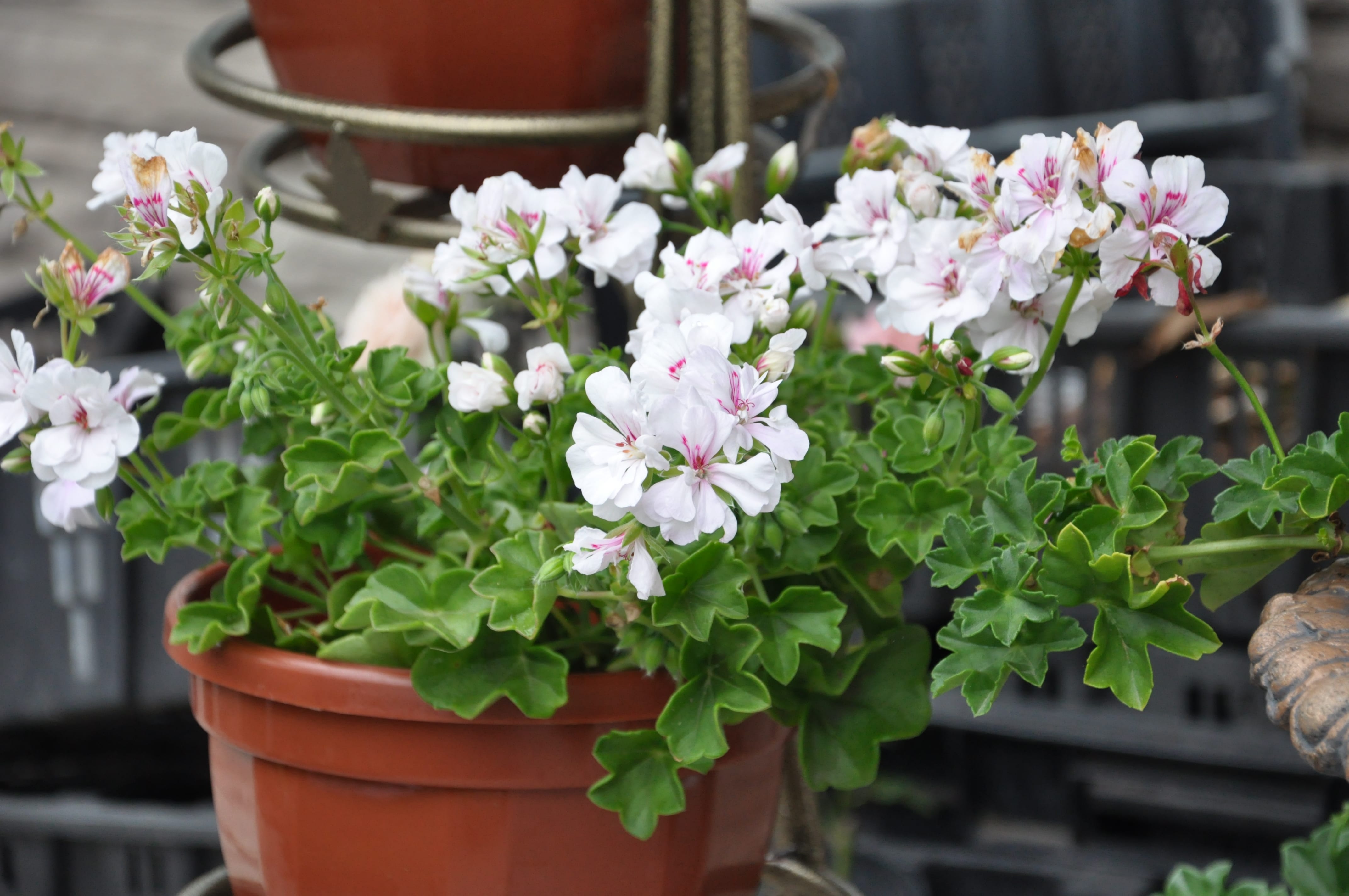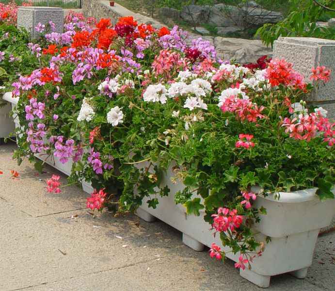 Funksjoner av voksende ampeløst pelargonium på gaten