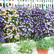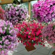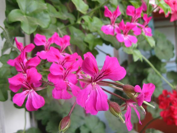 Cascading ampelous geranium forstås som en forbedret versjon av det gamle eføybladede pelargoniet, som har et stort antall farger og nyanser. Blomstene hennes er veldig smale, men det er så mange blomster, spesielt når de dyrkes i en hengende planter og en vinduskasse, at du ikke kan se bladene bak dem. En utmerket plante for å vokse i solen, mens andre kan dø av slike uutholdelige forhold.