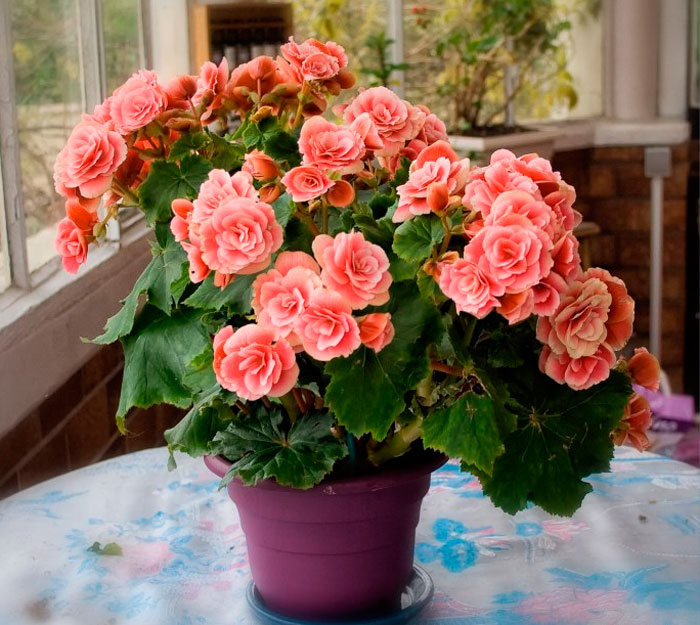 Enhver form for begonier kan bli en aksent i interiøret. Lyse store blomster av ampelsorter ser ut som en lys foss. Knollete arter, på grunn av sin buskete form, vil gi en følelse av komfort og varme.