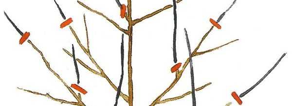 - Forkortelse av sideskudd, lengden skal være omtrent halvparten av størrelsen på hovedstammen.
