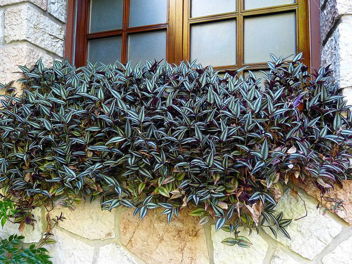 - Riverside, eller myrtebladet Tradescantia, vokser godt på halvskyggede steder. Vakre krypende lilla stengler er dekket av mange blader, lyse grønne over og lilla under. Hvite blomster på lange lilla pedikler samles i sammenkoblede krøller. Den brukes som bunndekke og ampelanlegg.