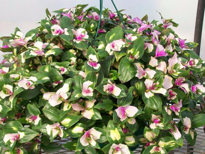 En annen spektakulær variant med en uttalt variegation er Tradescantia Nanuk. Bladene er fargerike, mot en hvitrosa bakgrunn, grønne striper med varierende fargemetning.
