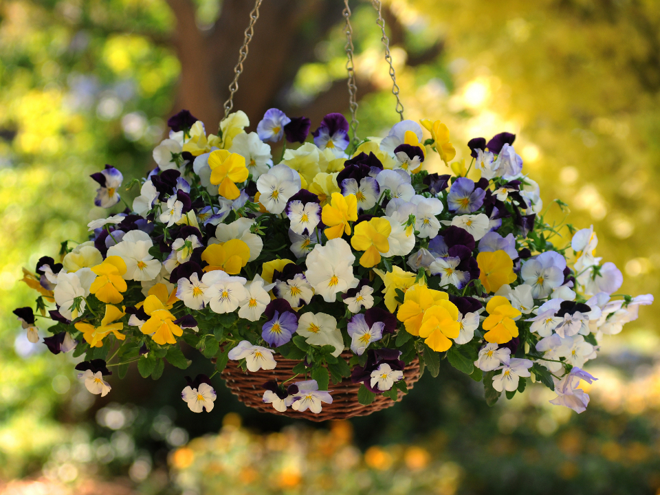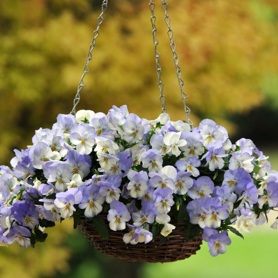 Ampel stemorsblomster har en rett, stabil form bare i begynnelsen av utviklingen, etter at stilkene deres begynner å falle. Derfor vokser det beste alternativet for å plante dem i potter eller dekorative kurver. Det er ikke vanskelig å ta vare på det, pottene kan henges ut på gaten, umiddelbart etter at trusselen om vårfrost har gått.