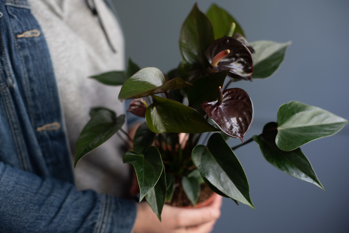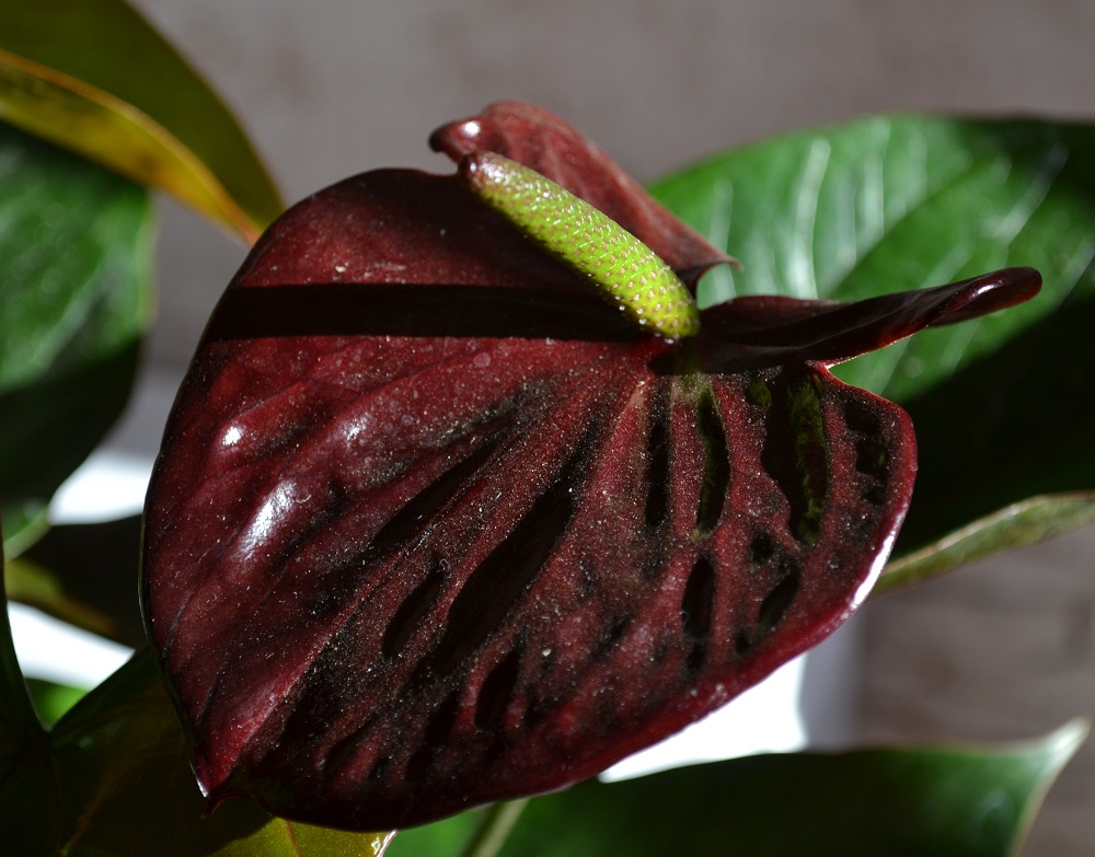 Svart anthurium er et utmerket alternativ for å dekorere rom. Den smelter godt sammen med andre inneplanter og gleder skjønnheten til de store blomstene med en stadig skiftende farge med riktig pleie.