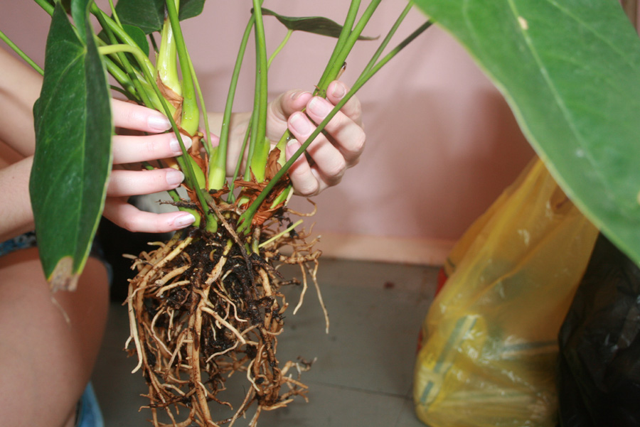 Hjemme reproduserer anthurium på tre måter: ved stiklinger, dele bushen og skille luftrøtter.