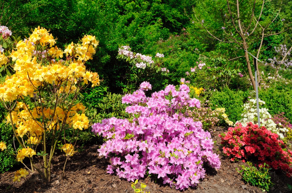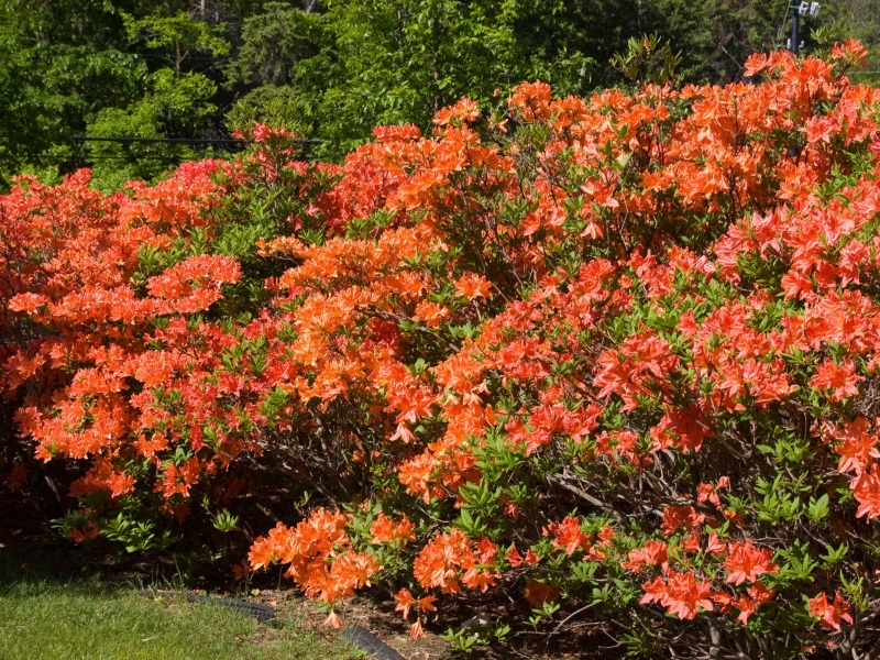 Azalea er en av de vakkert blomstrende buskene. Dekorer plener på forsommeren eller store hager i kinesisk, japansk stil. Busken ser passende ut ved siden av mange nåletrær: hortensia, løvbærbær, euonymus, lyng, kamelia, japansk lønn.