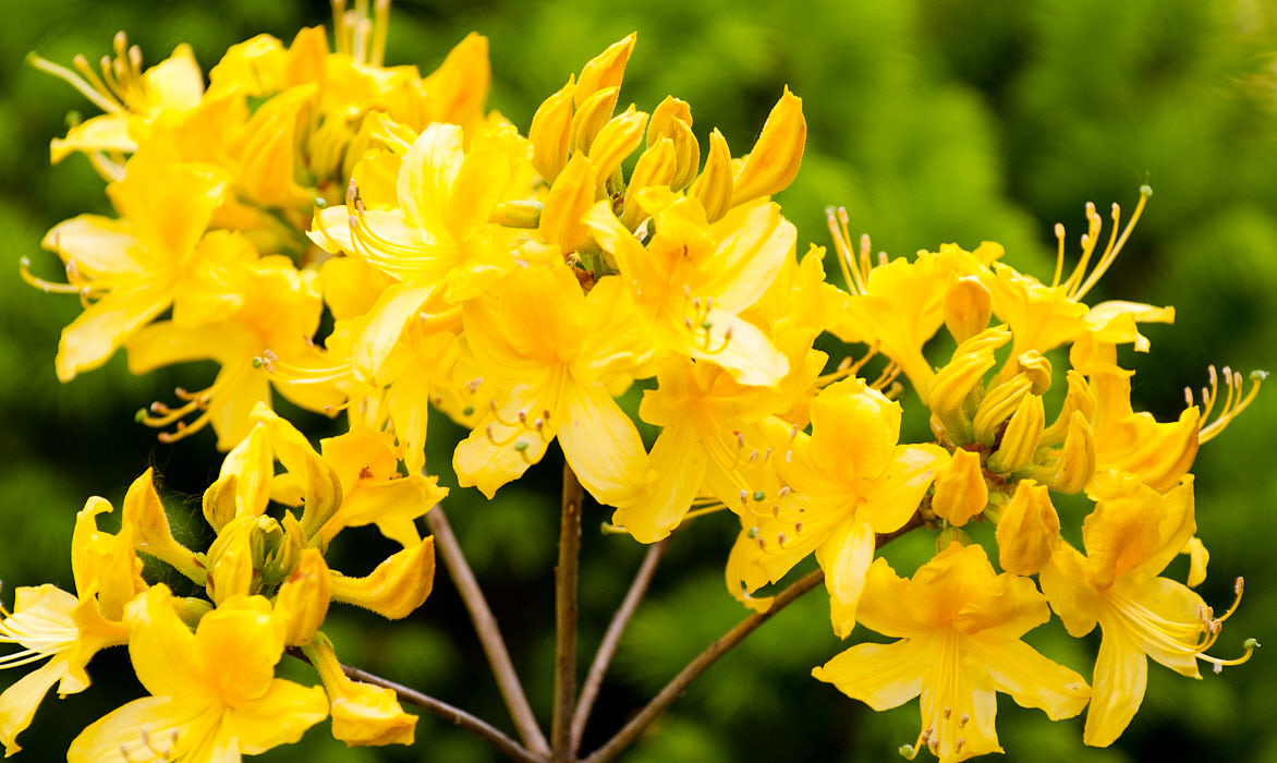 Det er også Pontic azalea (rhododendron). Blomstene hennes er gule og tynner den uforlignelige søte aromaen. Denne løvfellende azaleaen er stamfar for forskjellige hybrider med myke sengetøy. Planter må sørge for riktig luftsirkulasjon og jord beriket med mineralkomponenter.