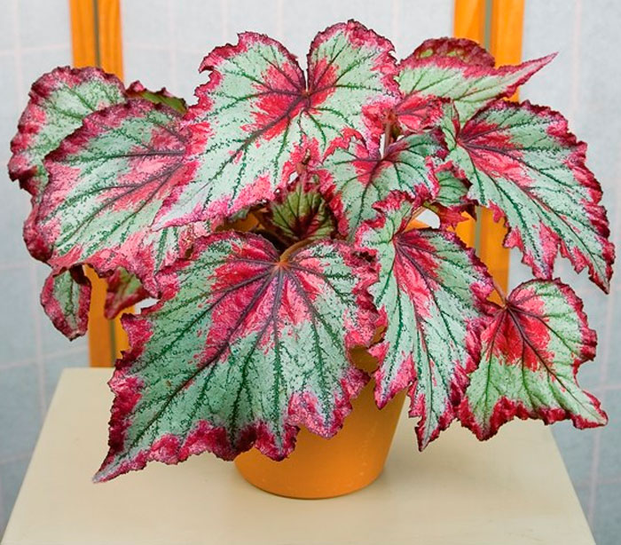 - Royal begonia, eller Rex begonia - bladene er to, - eller trefarget. Den vokser mye, bladplater kan nå en bredde på 25, en lengde på 30 cm;
