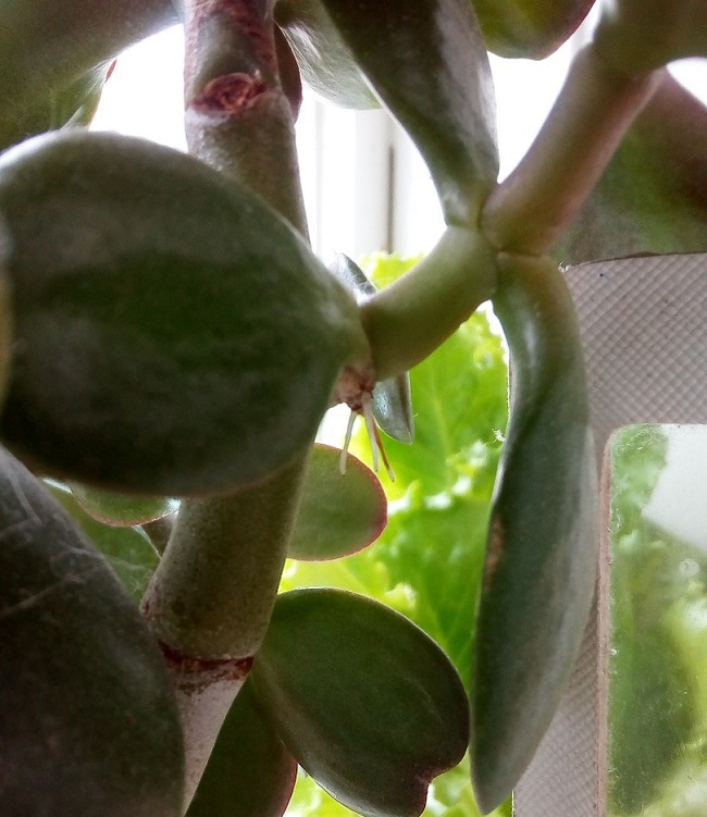 Noen ganger vises røtter nær stilkene på moderplanten. Slike frøplanter kan umiddelbart plantes i bakken.