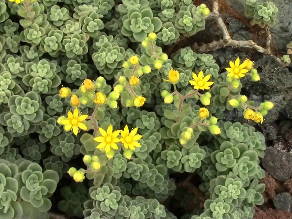 Aichryson laxum er en liten saftig busk med en firkantet form: høyde og diameter kan nå 40 cm.