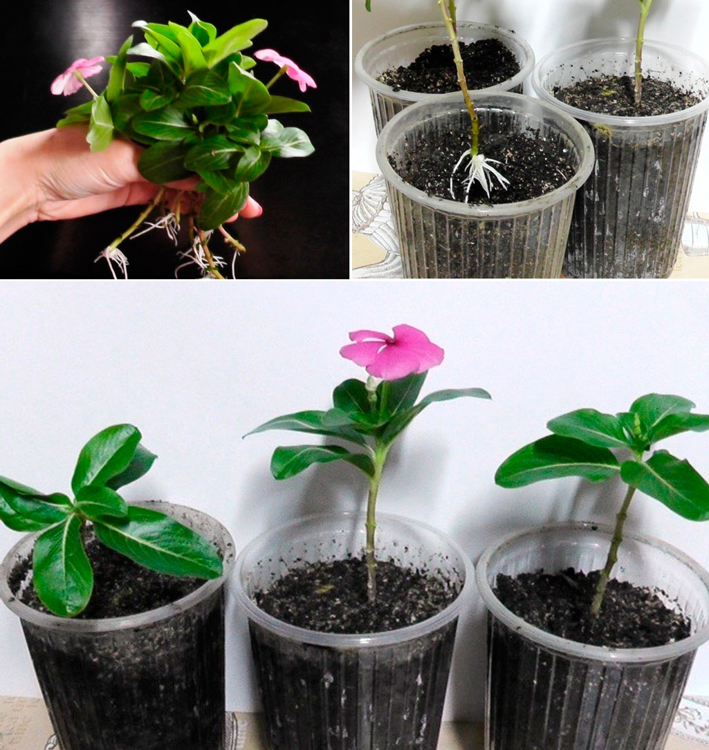 - For å gjøre det lettere å fjerne catharanthus fra potten, kan du tilsette litt vann på jordoverflaten. Plastbeholdere blir noen ganger kuttet eller til og med knust. I dette tilfellet er det viktig å ikke skade det delikate rotsystemet til planten.