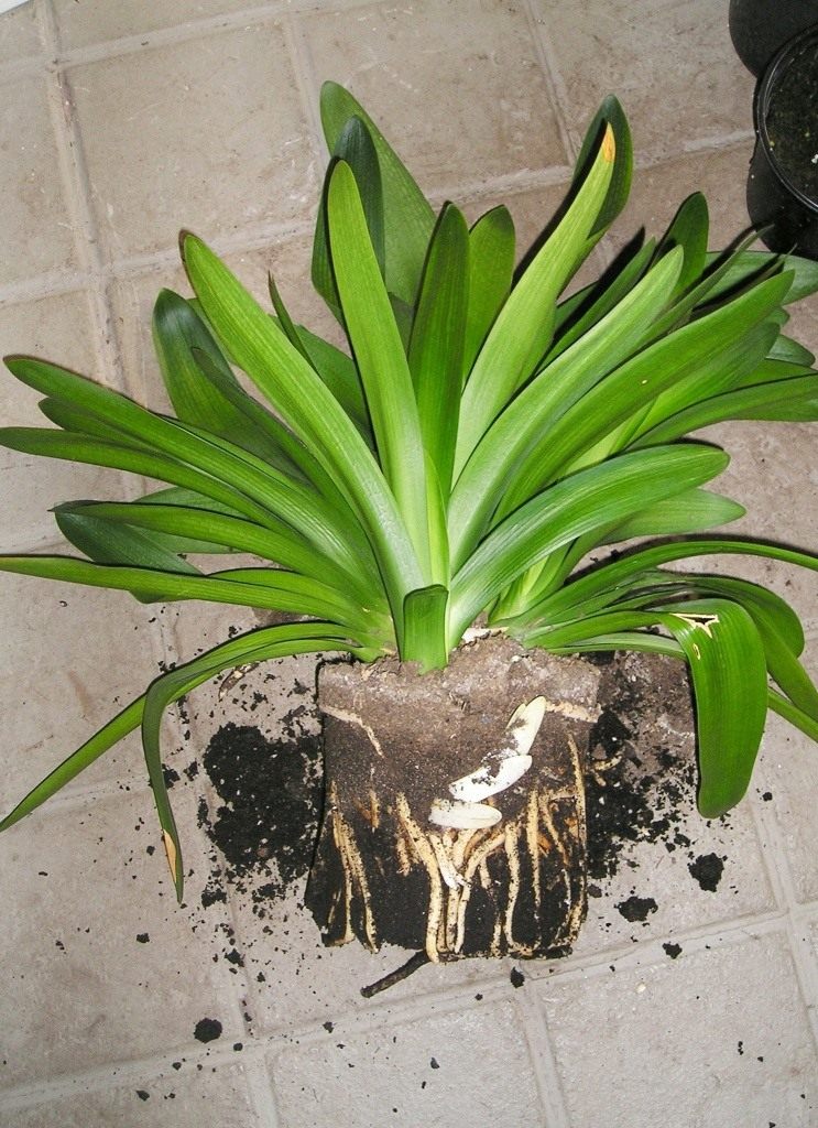 Transplantering av en plante i en veldig stor gryte er også svaret på spørsmålet om hvorfor clivia ikke blomstrer, siden all energien går i å fylle potten med røtter.