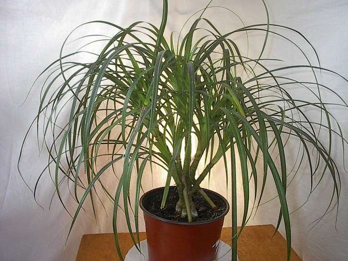 - bokarney, eller flasketre. Hjemlandet til denne blomsten er Mexico. Det er veldig populært blant blomsteravlere på grunn av det brede stammen og de lange tynne bladene, som gir det et veldig originalt utseende. Den kortikale stammen kan vokse opp til 1,5 m, og under naturlige forhold - opptil 10 m. Bladene har en grågrønn farge og når 60 cm;