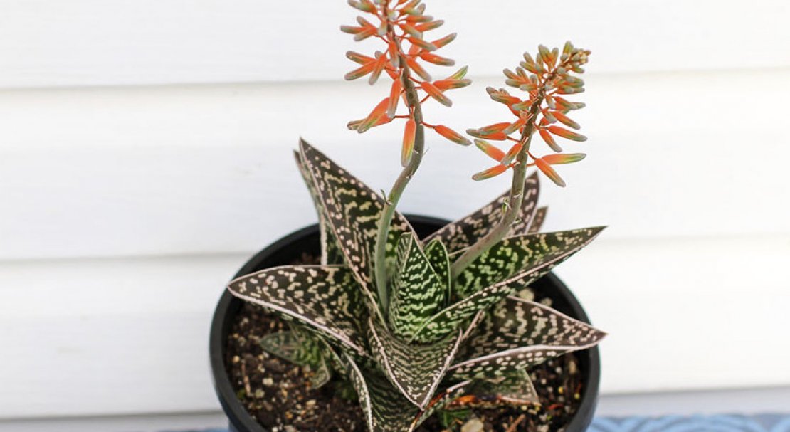- tiger aloe. Denne potteplanten med brogde blader tilhører familien Liliaceae. Hjemlandet hans er Afrika. De lange og tornede bladene på planten er ofte arrangert i form av rosetter som hvite flekkete striper er malt på. Blomster kastes bare av voksne eksemplarer. Om sommeren tas tigeraloe best ut i frisk luft.