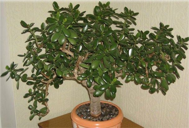 - pengetre, eller feit kvinne. Planten fikk fornavnet på grunn av at bladene ser ut som sølvdinarer, og den andre oppstod fra den brede stammen. Blomsten kan nå en høyde på 1,5 m. Bleke blomsterstander vises øverst på treet. Dette skjer ekstremt sjelden, det antas at et blomstrende tre gir lykke og bidrar til oppfyllelse av ønsker.