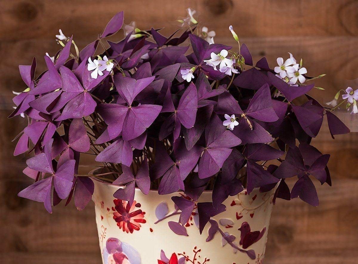 Den uvanlige fargen på bladene kan ha forskjellige nyanser: fra lys lilla til dyp lilla. Det kan være ensartet, det kan være plassert på begge sider av bladet samtidig, og det er alternativer der en slik farge presenteres på den ene siden - bare over eller under, mens den andre delen forblir den vanlige grønne. Den velkjente oxalis (møll) med små trekantede blader, irezine (som trenger mye lys for å opprettholde lysstyrken i fargen) er lilla på begge sider. Typene av Herbst's irezine og Pearl Lady's irezine er monokromatiske.