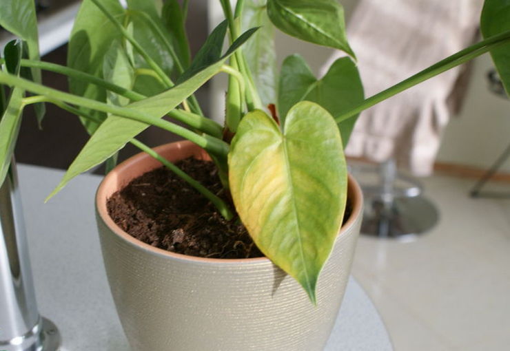 Anthuriumblomst: bladene blir gule - hva du skal gjøre