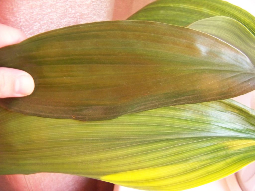 Ofte påvirkes bladet i aspidistra: flekker vises, løvet blir gult, visner, visner og faller av.