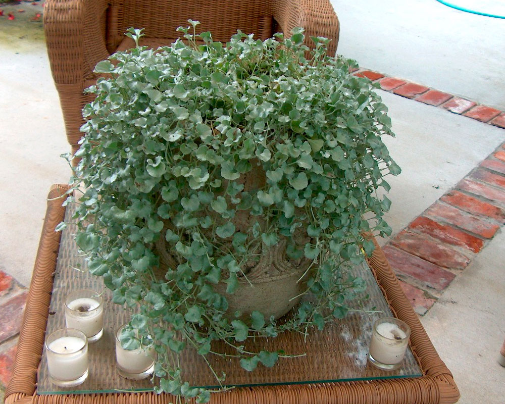 Landskapsdesignere bruker ofte dikondraplanten til dekorasjon: